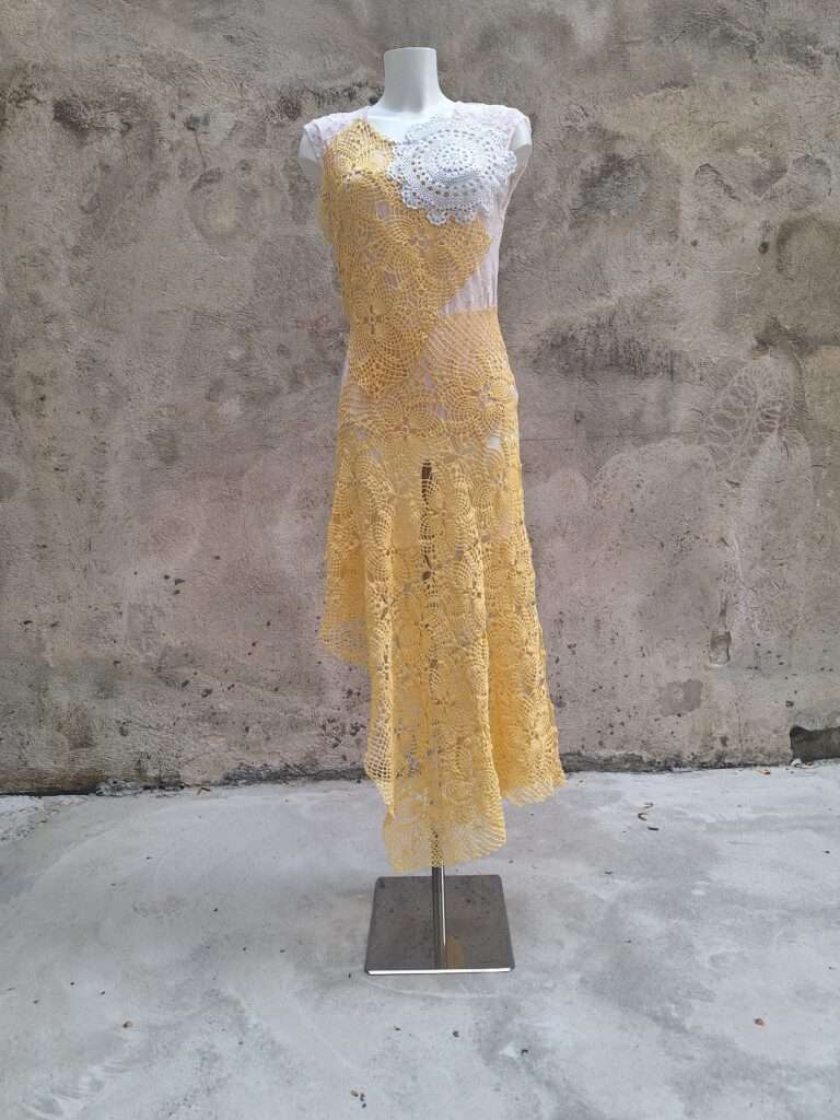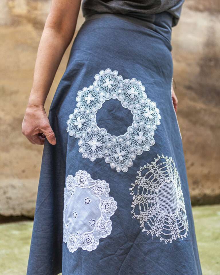 Kleine Tischsets und Tischtücher, ehemals heißgeliebte „Omadeckerl“, sind feine und hochwertige Handarbeiten von Frauen vorheriger Generationen und Grundlagen meiner Outfits. Voller Respekt vor diesen textilen Kunstwerken werden diese fit für die Zukunft gemacht und neu interpretiert.