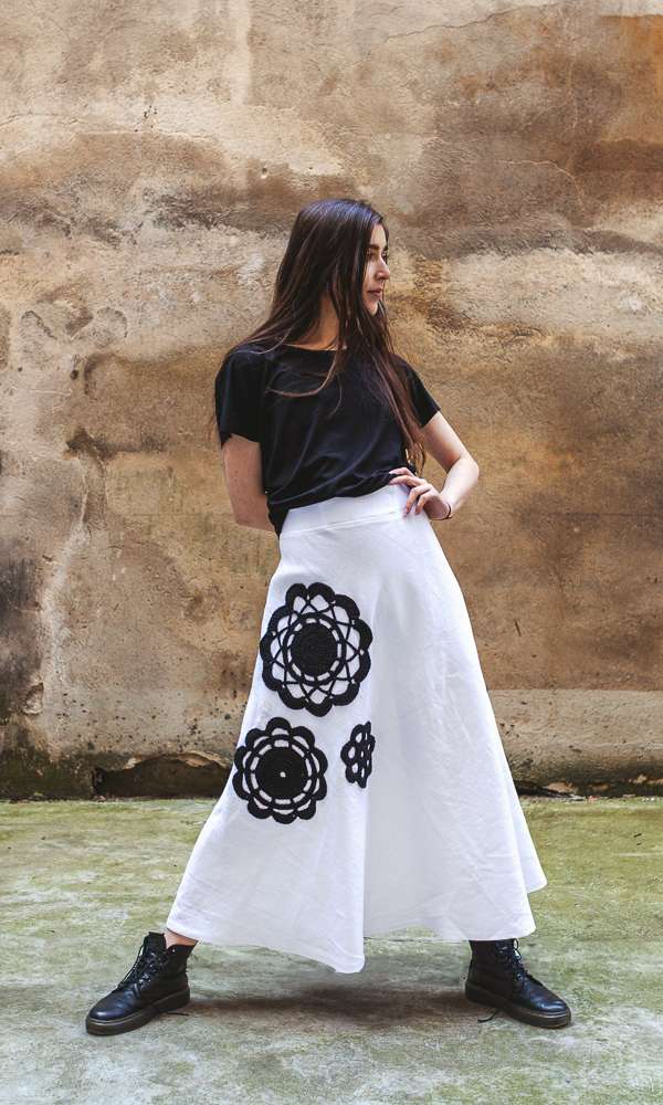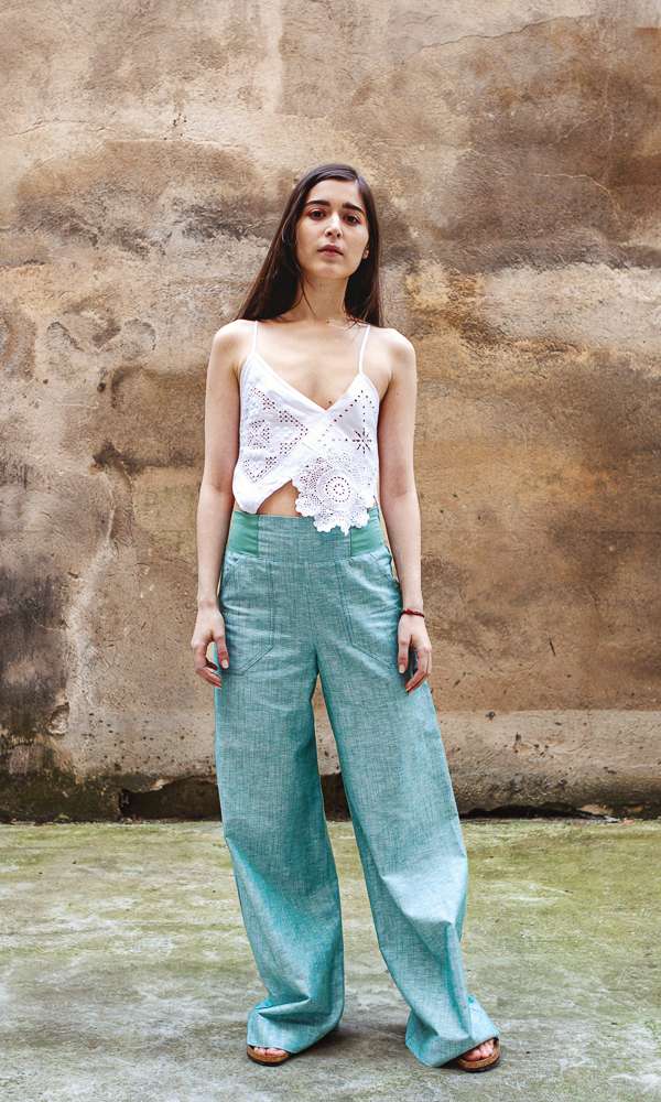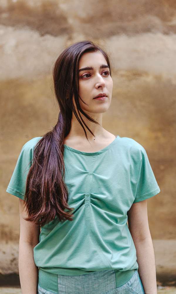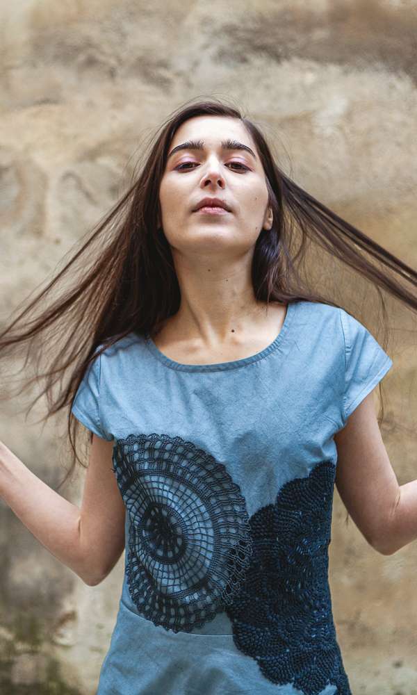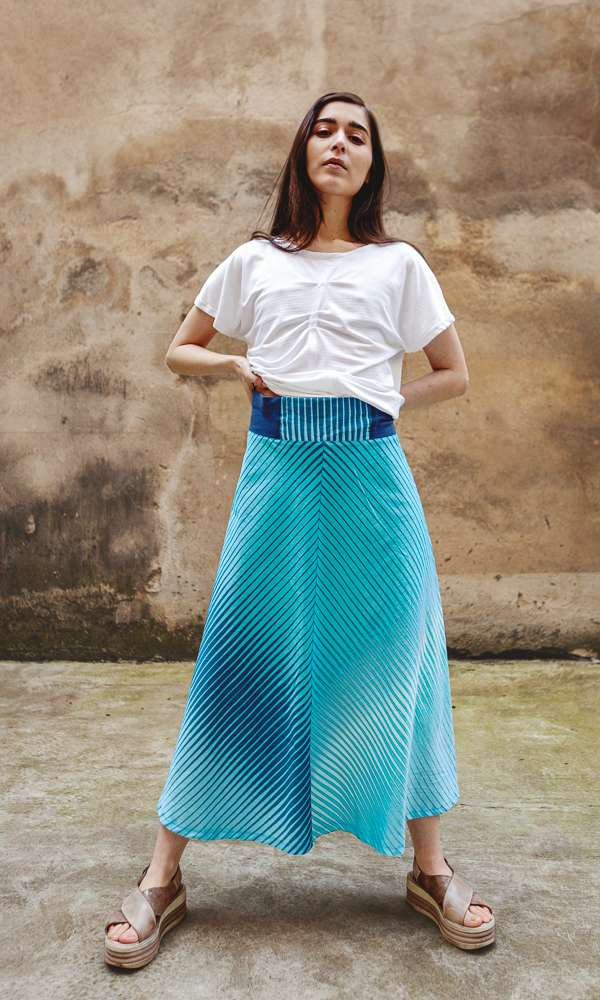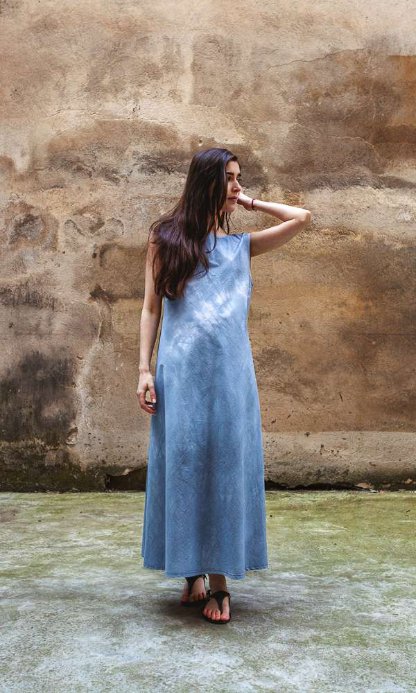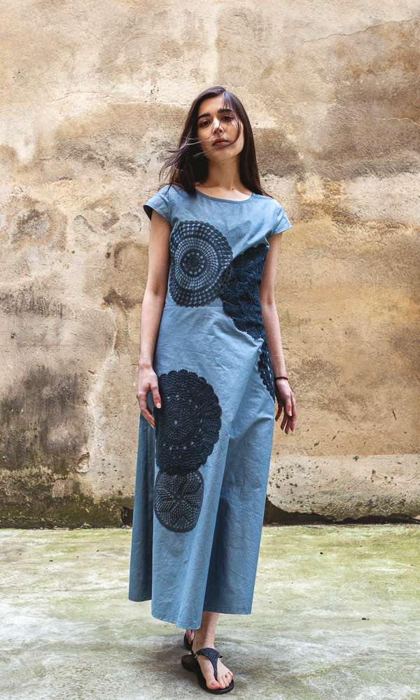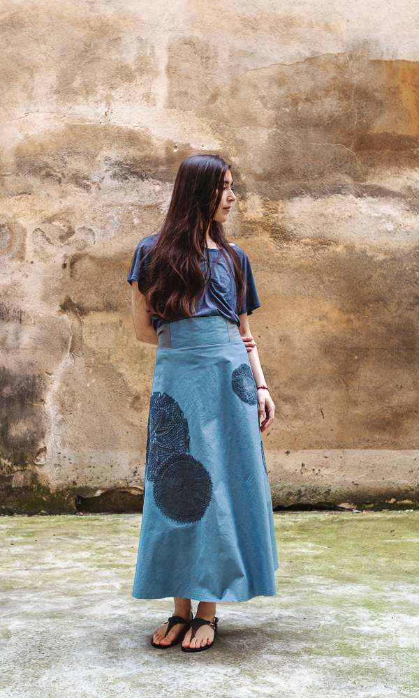 Kleider, Röcke und Hosen aus Leinen, handgefärbte Baumwolle und Jersey sind auch diese Saison wieder dabei. Großteils in der eigenen Werkstatt und ausschließlich regional hergestellt sind sie „Dresses of Tomorrow“.