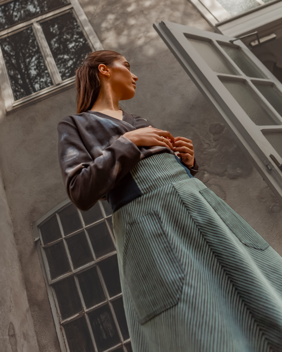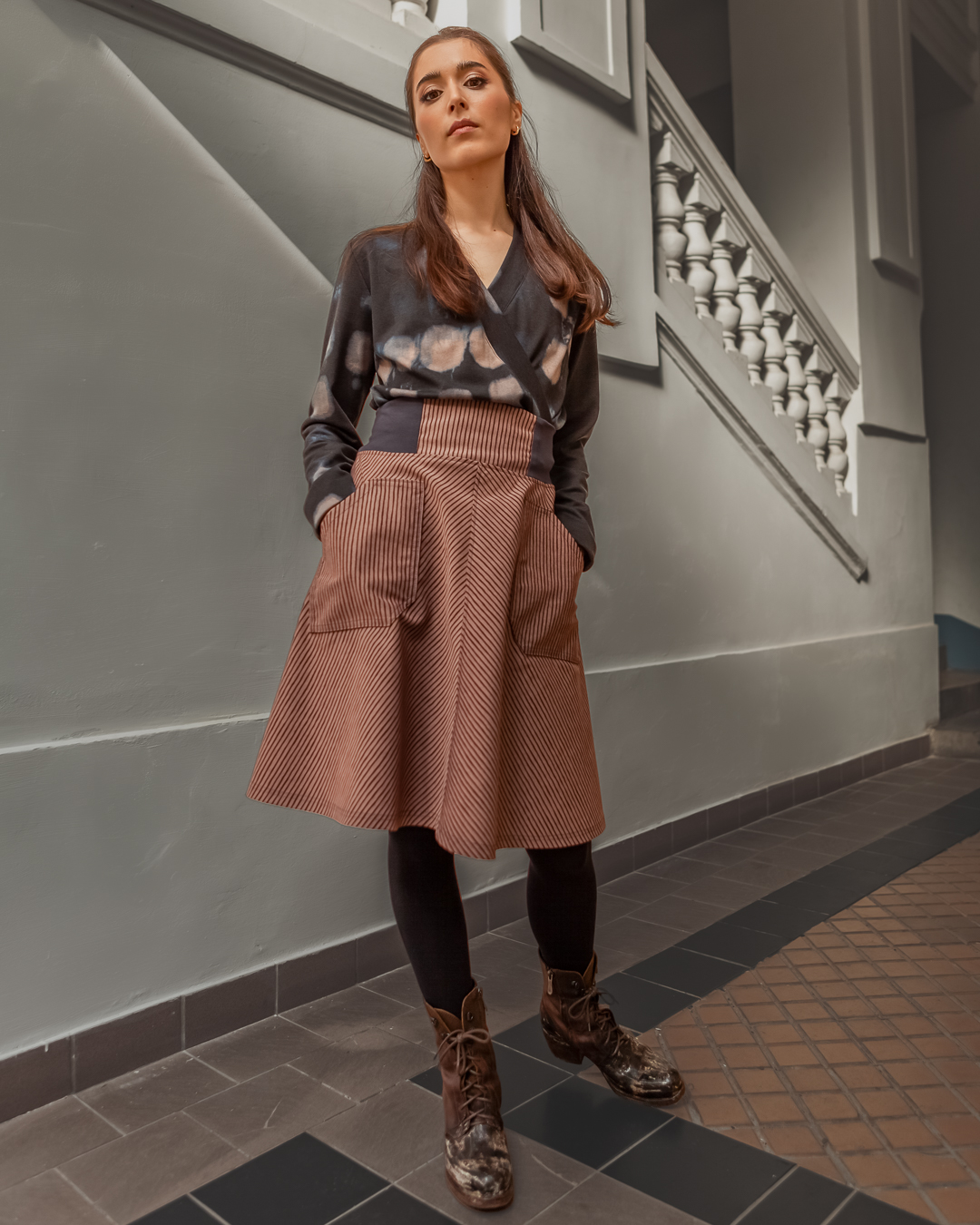 Meine Stoffe werden in Europa produziert, viele davon sind öko-zertifiziert. Du kannst die Stücke gut untereinander kombinieren und auch mit Teilen aus meinen letzten Kollektionen mischen. Das ist für mich gelebte Nachhaltigkeit – gut für die Umwelt, schön für uns alle!