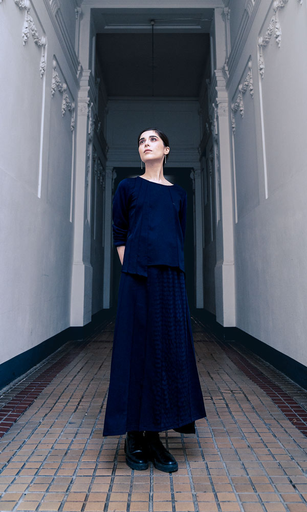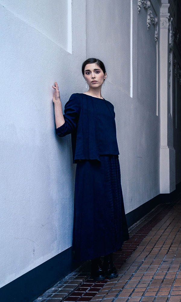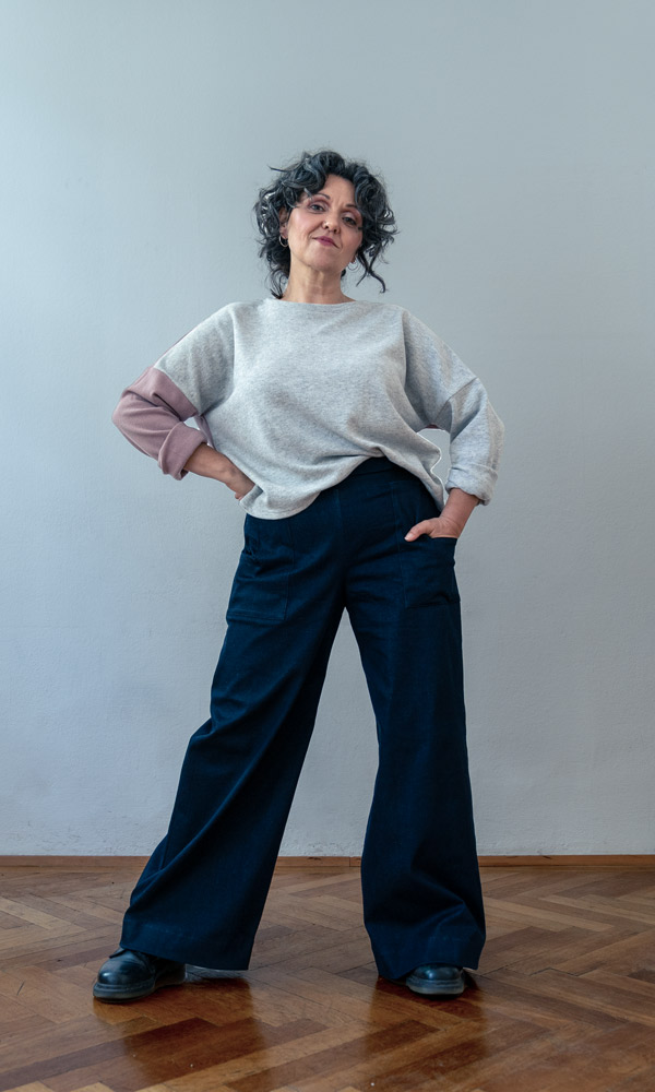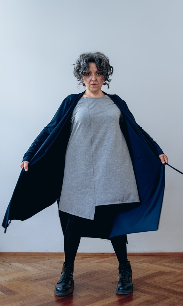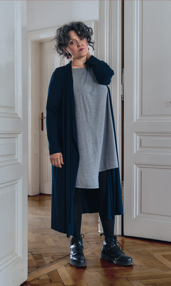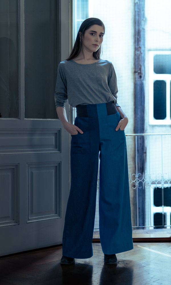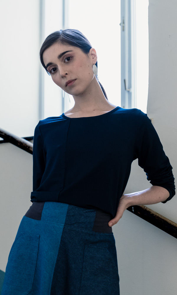 Ähnlich geht es mir mit used Denim. Die Jeansstoffe, die ich verarbeite sind etwas weicher und anschmiegsamer als ganz neues Material. Mein Denim stammt aus verschiedensten Quellen, ich suche mir die hochwertigsten Stoffe aus. Für die neue Kollektion habe ich mich für Blauschattierungen von Indigo- über klassisches Jeans- bis zu Mitternachtsblau entschieden – eben bluezone. Dabei hat sich der Name bereits vor der Farbwahl ergeben, für mich steht blau ganz klar für Wasser, für Meer und im großen Gesamtbild für nachhaltige Mode. Womit sich der Kreis wieder schließt. Meine Kollektionen sind limitiert, die Kleidungsstücke sind so verarbeitet, dass sie lange halten sollen – zu Klassikern in deinem Kleiderschrank werden sollen, zu Lieblingsstücken.