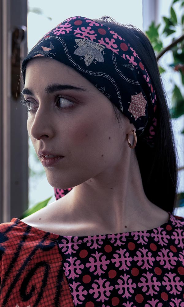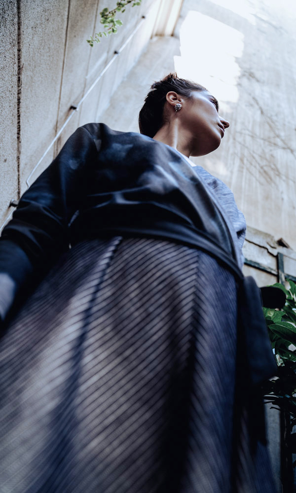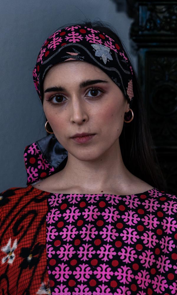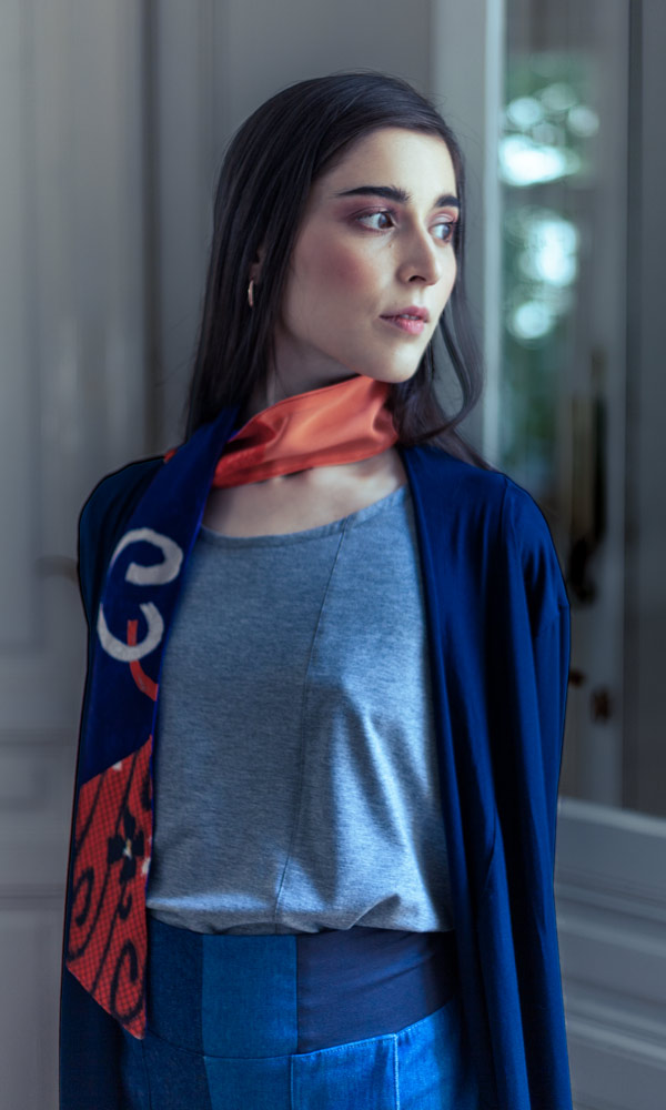 Nachhaltige Mode ist seit jeher ein großes Thema für mich. Muster und Stoffe aus anderen Kulturen haben mich immer fasziniert. Schon als Jugendliche konnte ich nicht widerstehen, aus dem Urlaub traditionelle Kleidungsstücke mitzunehmen. Die bunten Stoffe inspirierten mich zu meinen ersten Upcycling-Experimenten und seit einigen Jahren verfeinere ich diese Technik laufend. Nachhaltige Mode ist für mich Mode mit einer Message, meine Kleidungsstücke sollen Geschichten erzählen. Vor Jahren hat mir ein Großhändler erstmals originale japanische Seidenkimonos angeboten und damals habe ich mich in dieses Material verliebt. Die Haptik, die strahlenden Farben, die unendliche Vielfalt an Mustern – dazu der Reiz der nie erzählten Geschichten, die ich mir beim Nähen dazu ausdenke – Kimonoseide ist eine ständig sprudelnde Inspirationsquelle.